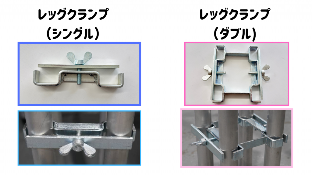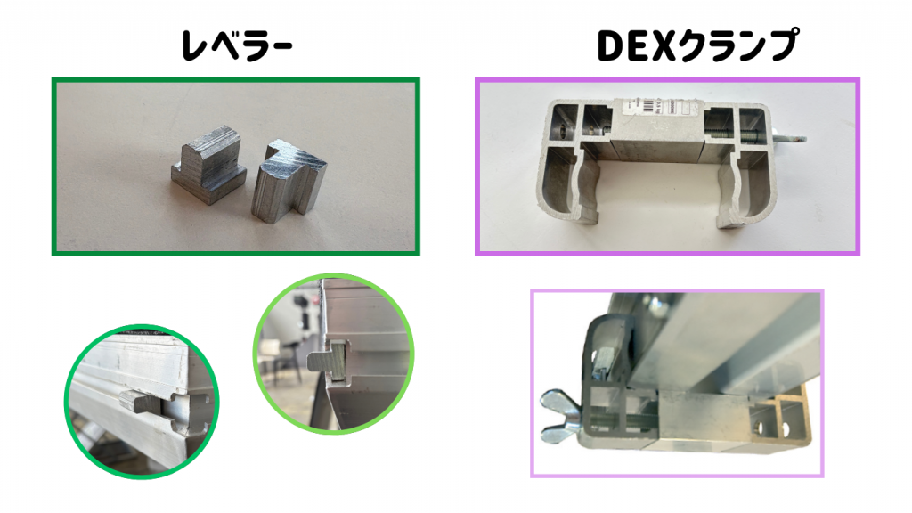 DEXクランプが「デッキ同士」を繋ぐのに対し、レッグクランプは「レッグ(脚)同士」を繋ぐために使用します。