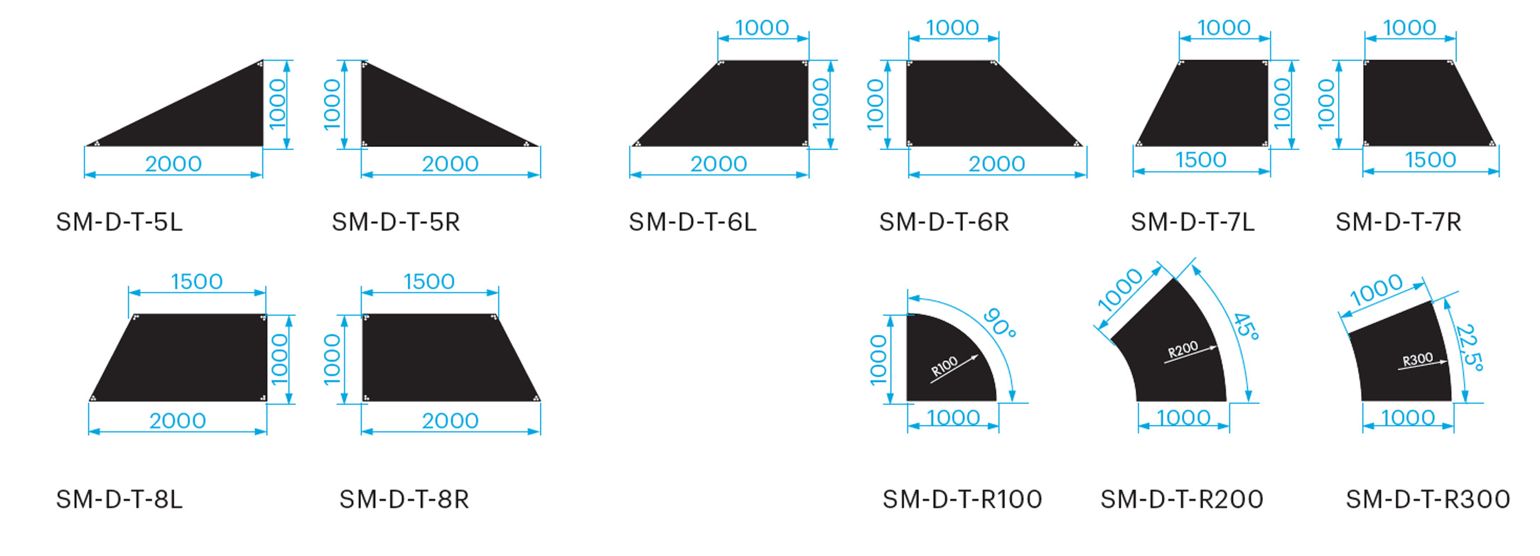 STAGE DEXのトップラインは、豊富なサイズと形がありそれらを自由に組み合わせることで、従来の直線的なステージだけではなく、様々な形状のステージを施工することが出来ます。