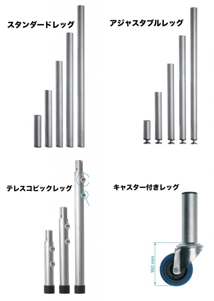 ※テレスコピックレッグ(伸縮タイプ)で使用する際は、内側の細いパイプに使用することが可能です。