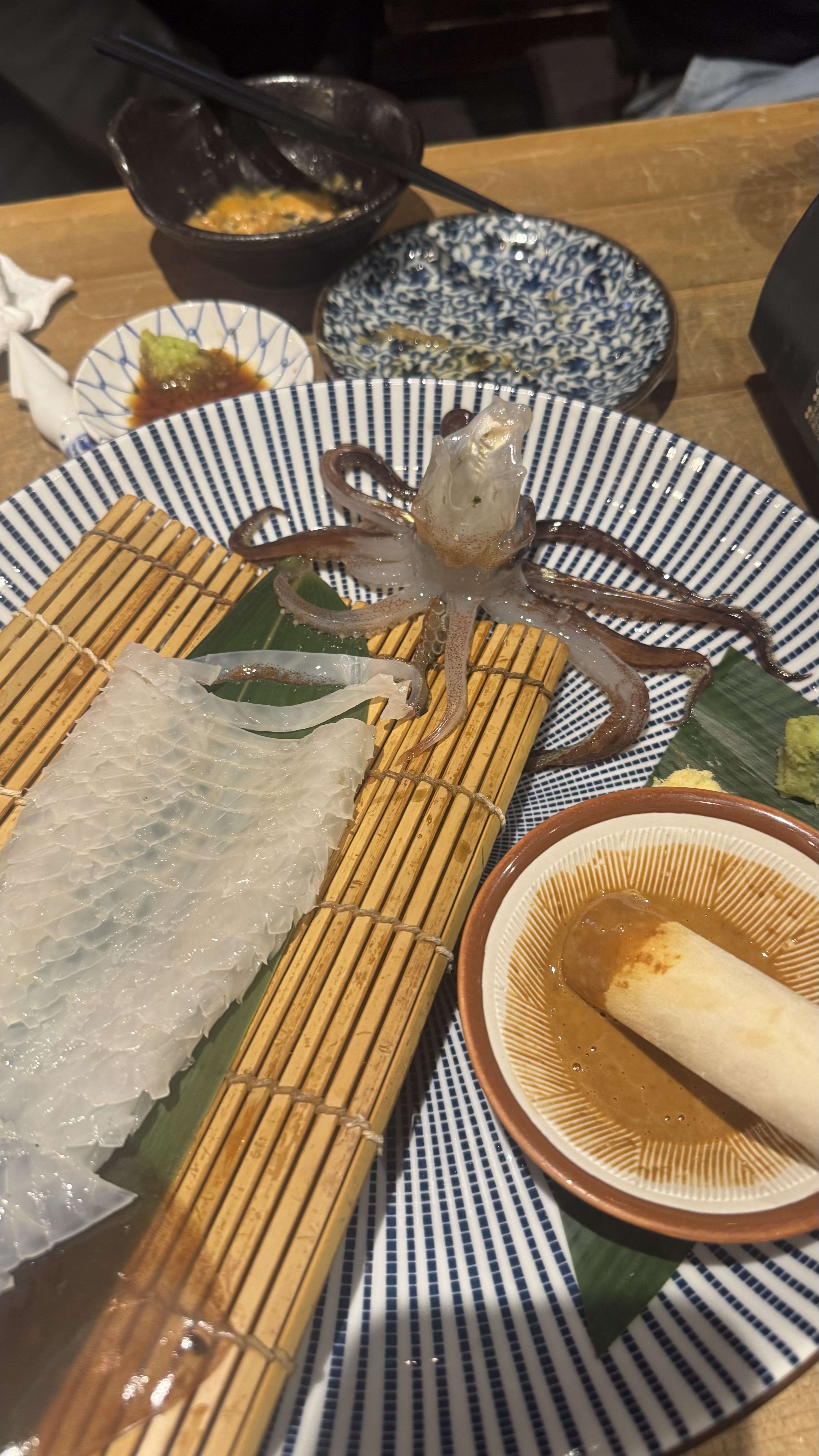 会場の雰囲気は明るく、料理も美味しく、刺身、鍋、から揚げそしてこの居酒屋名物であるイカを食べました。ネパールでは生の魚や肉を食べる習慣がないので、生の料理を試すことは、まるで新しい味や文化の世界に踏み込むような体験でした。