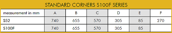 標準コーナーの範囲は45~135度の様々なアングルで、それぞれ2~6通りのコーナーを取り揃えています。