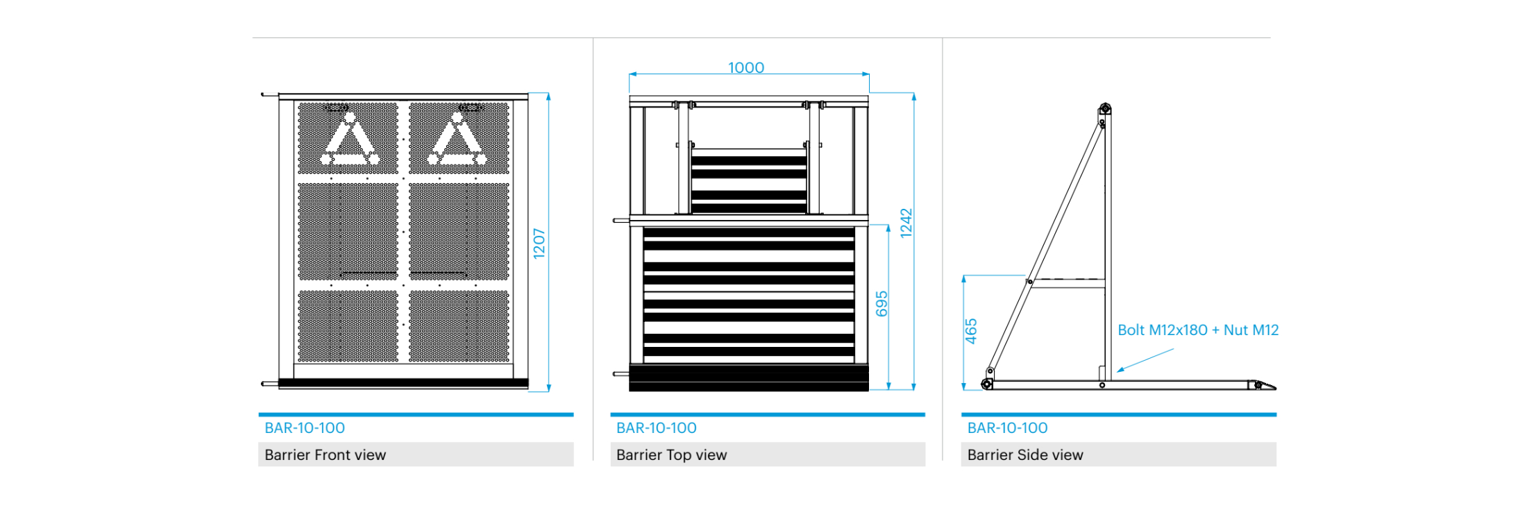 | Self weight alu barrier: | 35 kg / piece 1m |