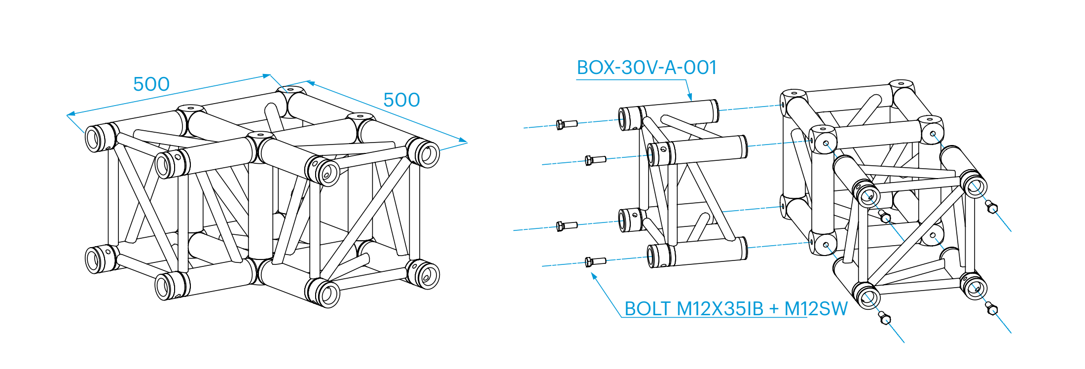 ボックスコーナー用のプリマウント接続ユニット。 ボックスコーナー用の取り付け済み接続ユニット。