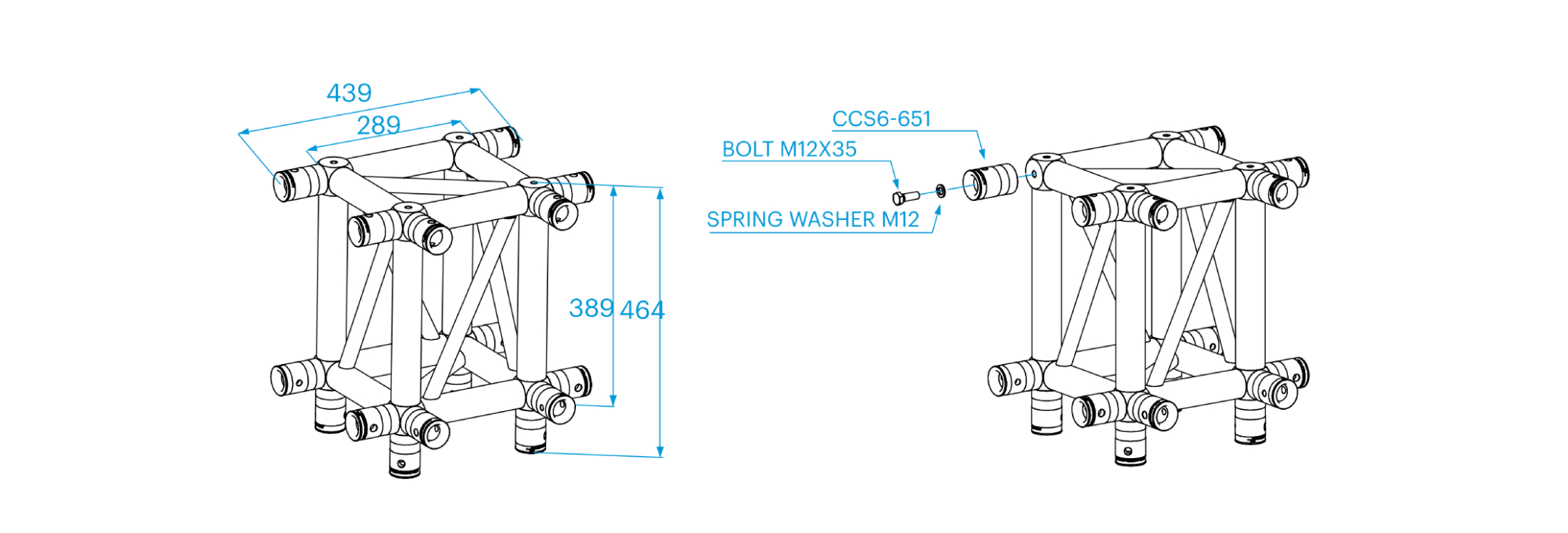 ボックスコーナーは、2ウェイから6ウェイまでのコーナー接続を1つのユニットで実現した、レンタル用の究極のフレキシブルソリューションです。 用意されたキューブに接続部を追加するだけで、ニーズに合わせたコーナータイプにすることができます。 ボックスコーナーは、その一体化された構造強度により、どのような建築物においても最適な積載が可能です。