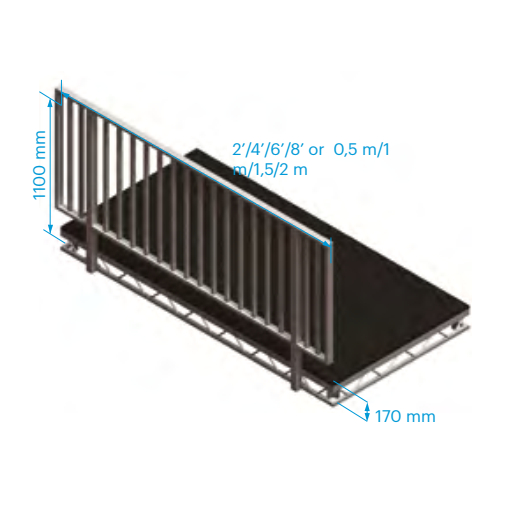 LiteDeck手すりは2つの構成で提供されており、用途に応じて適切な手すりシステムを選択することで、必要な法規制への適合を実現します。