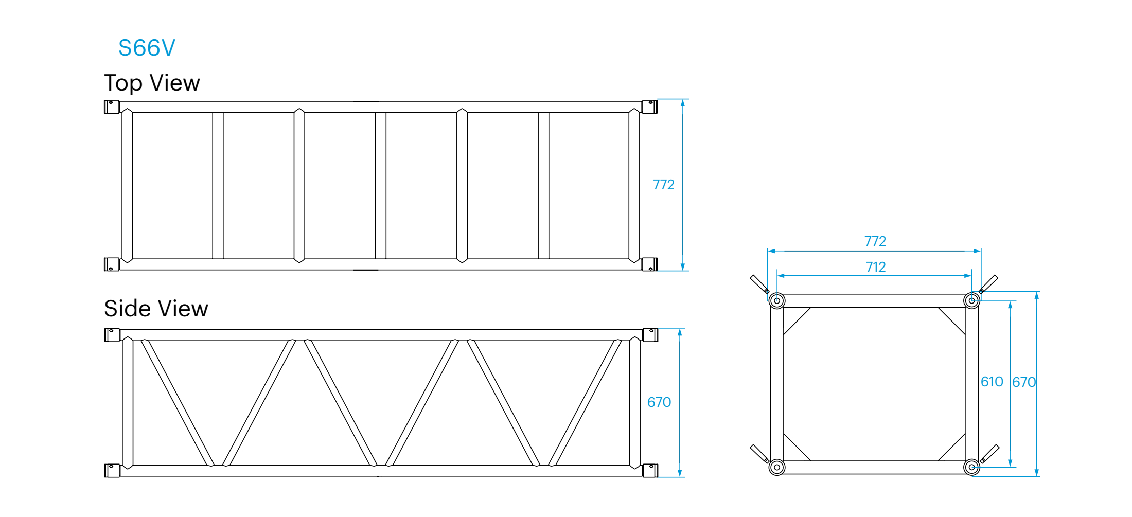 S66シリーズのトラスは、主弦材 (50 x 4 mm)と対角線部材(30 x 3 mm)