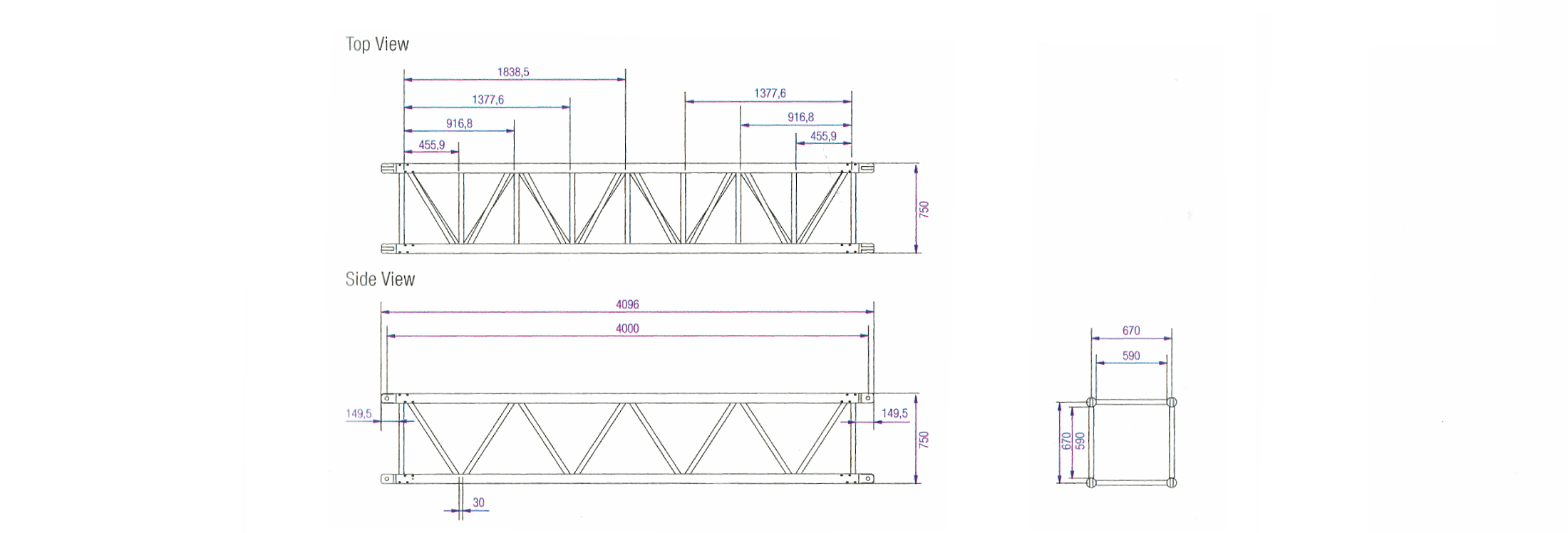 D75Tトラスは、メインコード(80 x 10 mm)と対角線部材(40 x 3 mm)