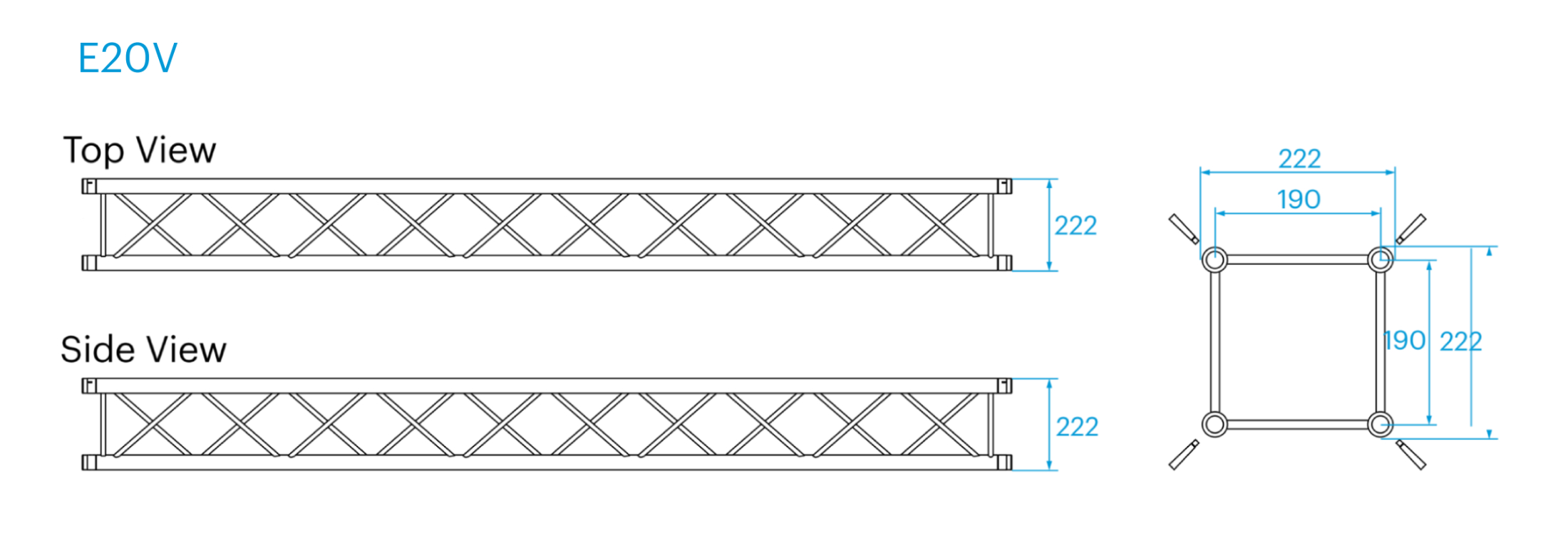 E20は、小さくて見た目に美しいトラスです。コンパクトな構造、最適な強度、ハイテクな外観により、このトラスは多くの用途で適切な装飾要素になっています。