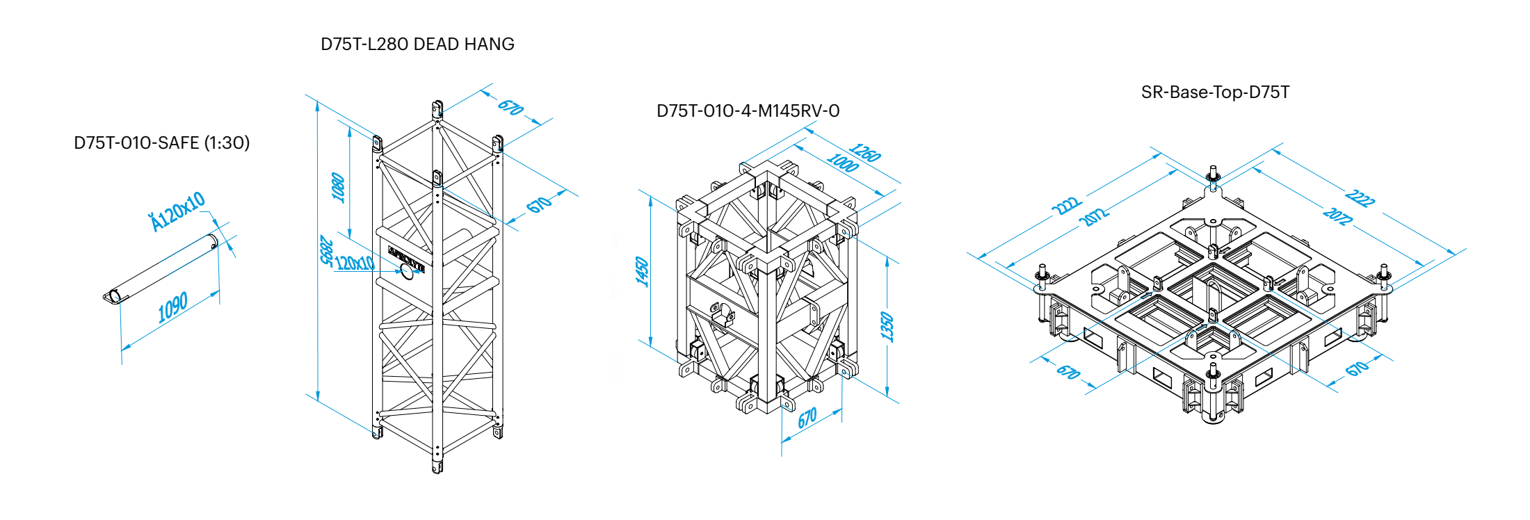 地上支援システムで使用するために、D75タワー用のスリーブブロックを設計しました。これはD75TタワーとM145RVマンモストラスを組み合わせたものです。スリーブブロックは、10mのカンチレバーで2000kgのカンチレバーポイントロードを扱うことができます。