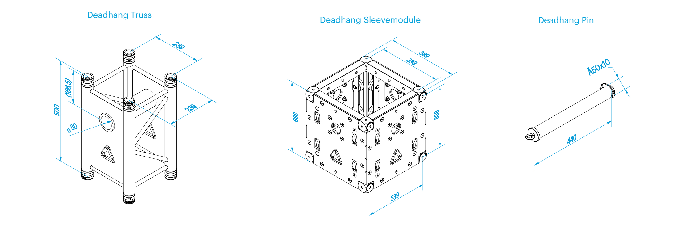 また、アダプタープレートとの組み合わせにより、H40RまたはH30Vトラスのいずれにもスリーブブロックを使用することができ、トラスの全容量を維持することができます。HTスリーブモジュールは、完全にボルトで固定された構造体であるため、従来の溶接タイプに比べて強度と精度が格段に向上しています。現行のMPTスリーブブロックと比較して、HTスリーブブロックはサイズが縮小され、標準的なH40Vボックスコーナーと同じ寸法になっています。力の伝達が最適化されているため、エレメントはトラスと同等の強度を持ち、例えば片持ち梁の荷重を大幅に増加させることができます。