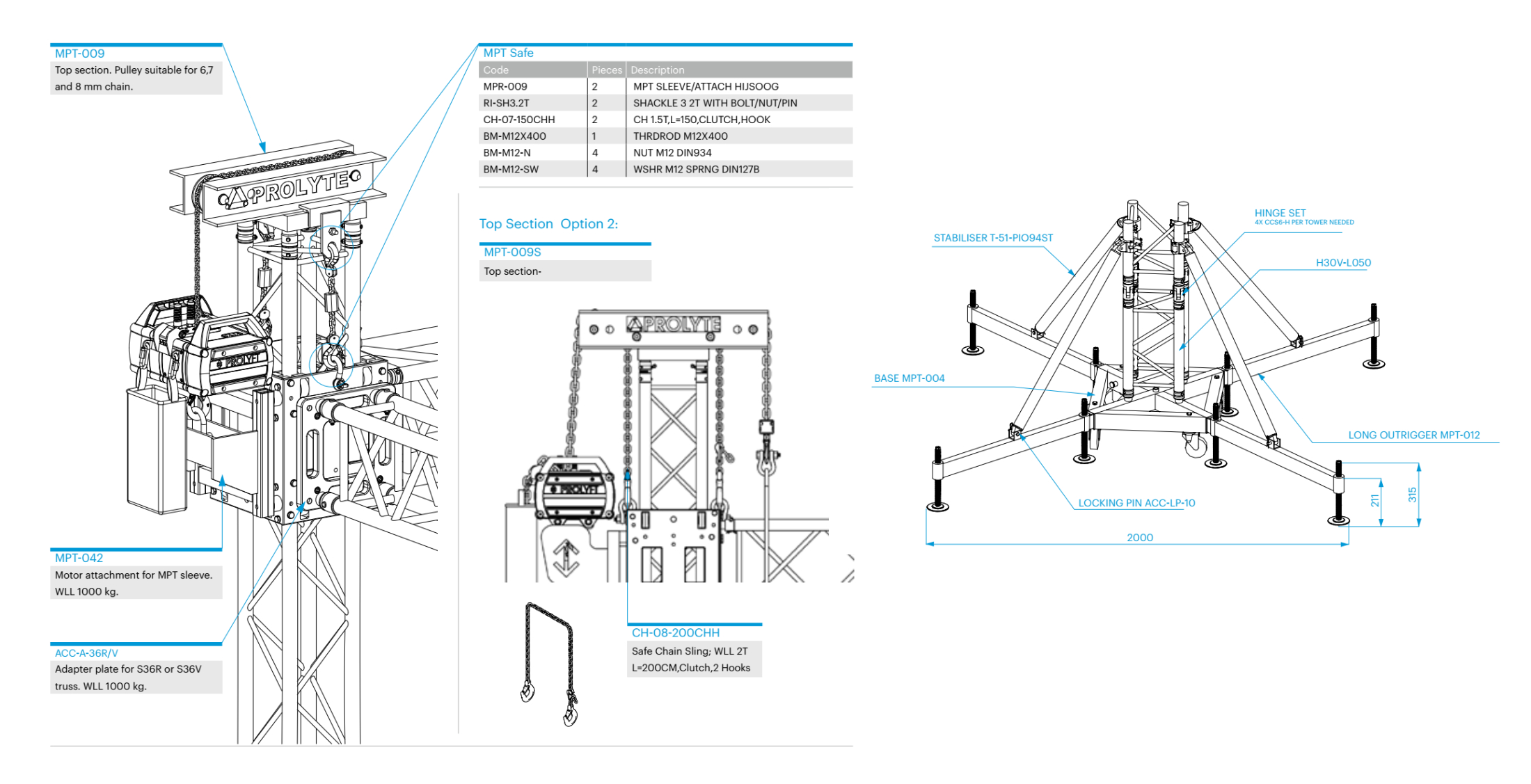 トップ部とベース部は、ハンドウインチやチェーンホイストの使用が可能です。トラスシステムをタワーで拡張したい場合は、専用のパーツを購入するだけでOKです。