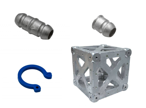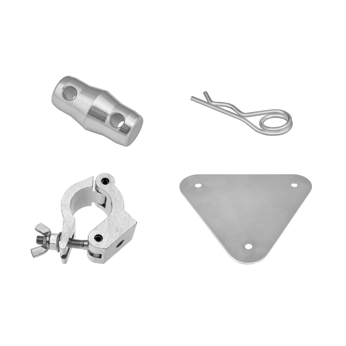 このセクションでは、トラス構造の組み立てやセットアップに役立つアクセサリーをご紹介します。カプラー・スピゴット・Rピンはトラス接続時の必須アイテムとなります。