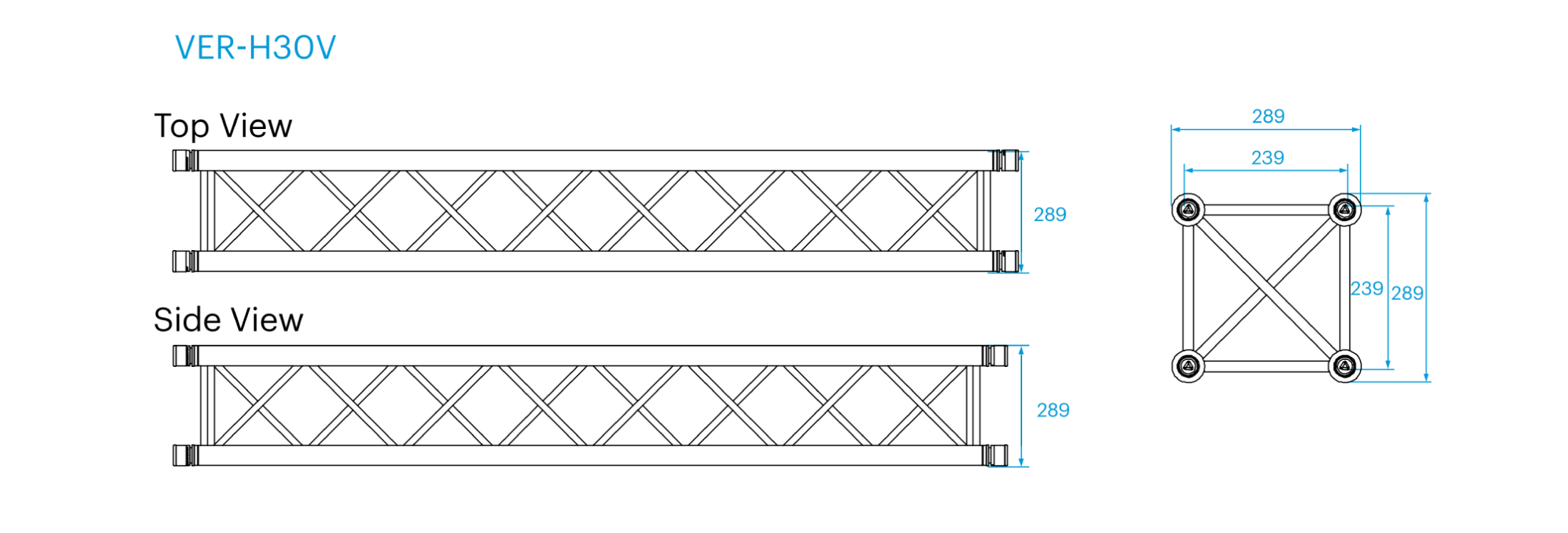Verto H30シリーズのトラスは、主材(48 x 3 mm)とラチス部材(16 x 2 mm)で構成されています。