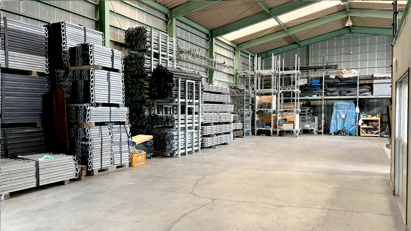 「熊川武蔵野」交差点を左折して西砂川街道にはいり「西砂中里」交差点を過ぎて600m程進んだ左手の倉庫になります。
